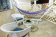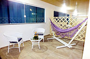 - Varanda frontal com rede, poltronas e mesa de centro (nascente do sol, com vista para área verde / pomar);