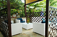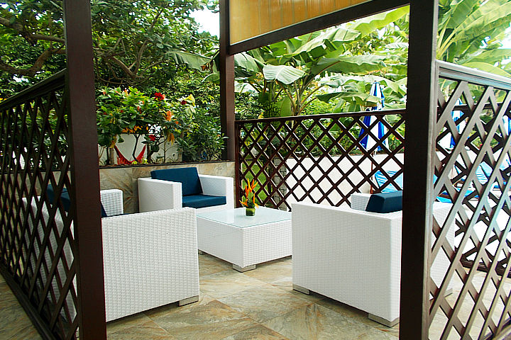 A pousada oferece uma bela área verde que abriga um amplo pomar com diversas árvores tropicais como: bananeiras, mangueiras, ananás, goiabeiras, jaboticabeiras, mangostanas, rambutaneiras, entre outras. Este pomar costuma ser frequentado por “ilustres visitantes”, são diversas espécies de aves como: Tucanos, sabiás, papagaios, pássaros-preto e outras aves da região, além de outros animais típicos da fauna local como: iguanas, micos, saguis que atraídos pelas frutas do pomar, proporcionam aos hóspedes uma experiência tranquila e prazerosa de contato mais próximo com a natureza.